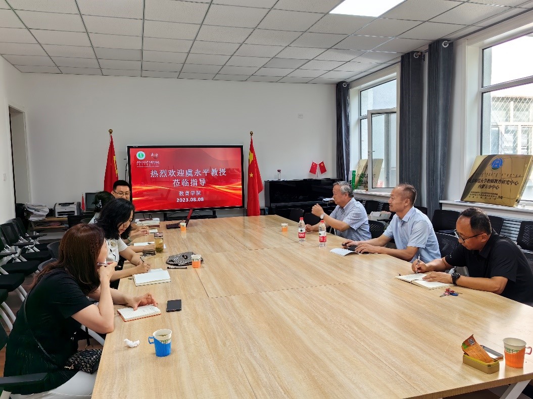 8月8日上午,南京师范大学教育科学学院虞永平教授应我院邀请,来校座谈交流。虞永平教授兼任教育部幼儿园教师培养教学指导委员会主任委员、教育部基础教育教学指导委员会学前教育保教指导专委会副主任委员、普通高等学校师范类专业认证专家委员会委员、江苏省陈鹤琴教育思想研究会理事长。座谈会由院长赵荣辉教授主持。副院长边琦、杨日飞,各系部主任及学前与特殊教育系部分教师参加了座谈交流。