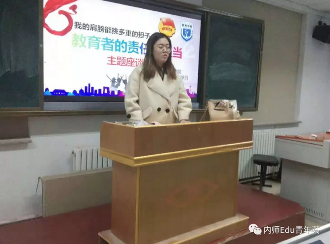我院开展了以“我的肩膀—能挑多重的担子?教育者的责任与担当”为主题的座谈会,会议由我院团总支负责人孙悦老师主持召开,学生会主席团、各部长及各班团支书参加会议。