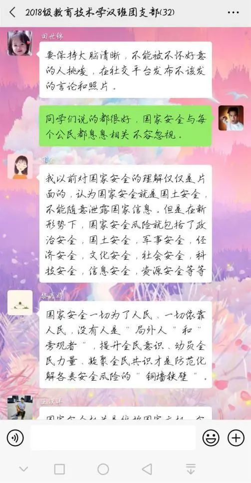 为深入学习贯彻以习近平同志为核心的党中央关于疫情防控工作的决策部署,引导学生将总体国家安全观贯穿抗疫全过程,履行应对突发公共事件的职责义务,提升维护国家安全的自觉性和主动性,我院各团支部举办以“深入认识公共卫生安全,增强国家安全意识”为主题的团日活动。通过线上交流、分享心得的方式,加强同学们对国家安全的认识,使国家安全教育深入到每个人心中。