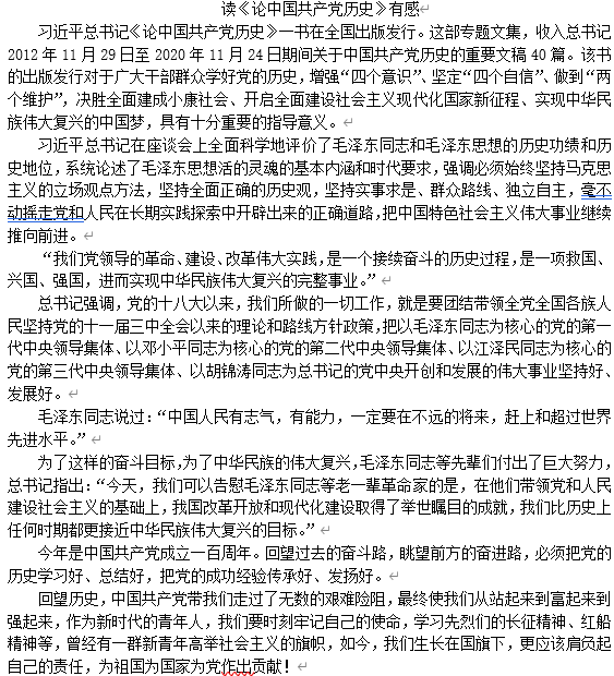 为深入开展党史学习教育,提升青年的思想素养,我院青马班和全院青年进行了“学党史、强信念、跟党走”学习教育。通过学习研读党史书籍并作心得感悟进一步了解了中国共产党发展、活动、斗争的历程,将学习和传承党史内化于心,外化于行。