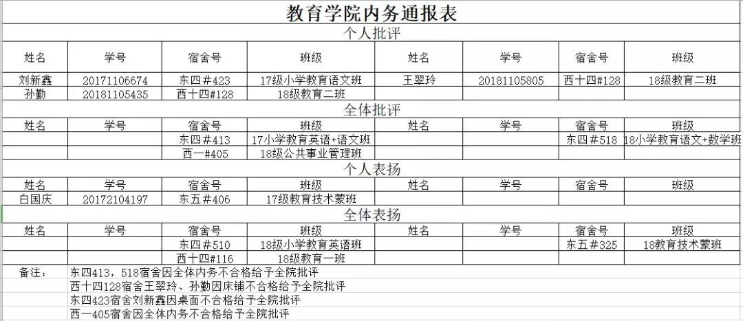 教育学院内务通报表
