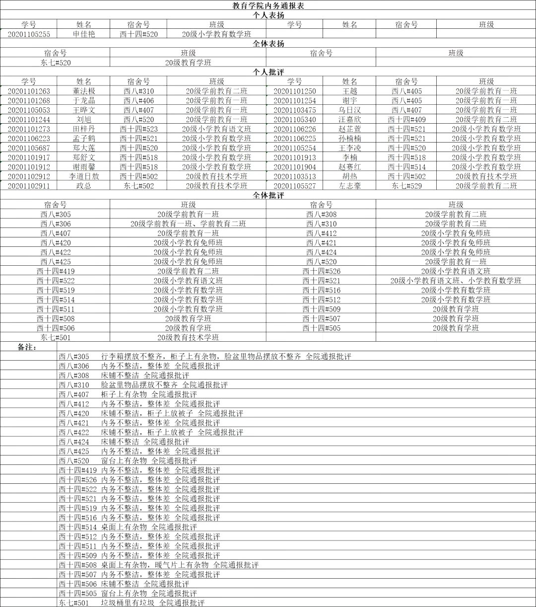 教育学院10月13日内务通报