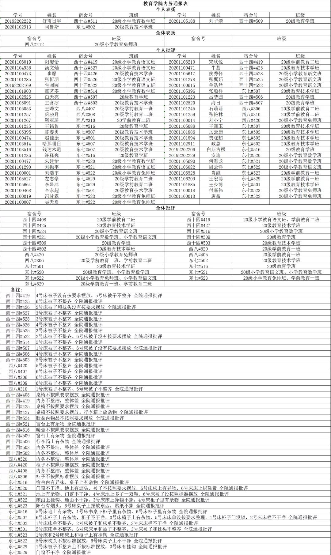 教育学院10月15日内务通报