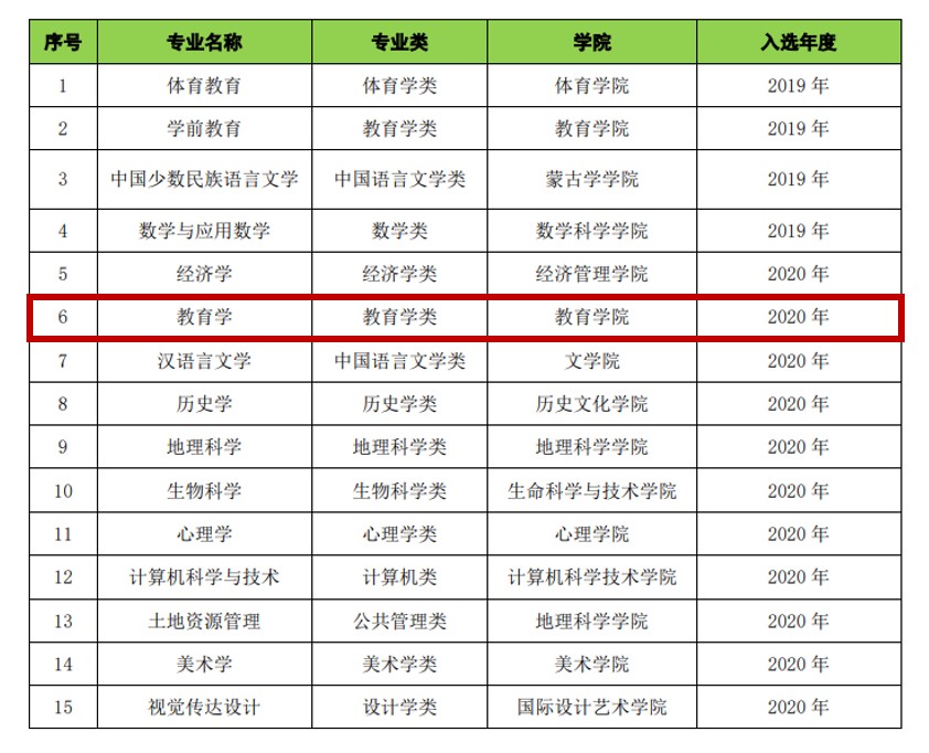 近日,教育部印发《教育部办公厅关于公布2020年度国家级和省级一流本科专业建设点名单的通知》(教高厅函〔2021〕7号),公布了2020年度国家级一流本科专业建设点,我院教育学专业入选国家级一流本科专业建设点。这是继2019年我院学前教育专业入选国家级一流本科专业建设点之后的又一重大建设发展成果。