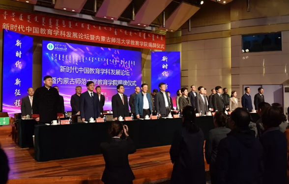 4月14日, 我校举行新时代中国教育学科发展论坛暨云手机网页版入口揭牌仪式。北京大学教育学院院长、教育部课程与教材中心国际学校认证专家组成员、博士生导师阎凤桥,北京师范大学教育学部副部长、教育部高等学校教育技术专业教学指导分委员会副主任委员、博士生导师李芒,中央民族大学教育学院党委书记、省部级人文社科重点研究基地主任、博士生导师苏德毕力格,西北师范大学教育学院党委书记苏丽蓉,海南师范大学教育科学研究院院长、海南教育改革与发展研究院主任李振玉,首都师范大学教育学院副院长、博士生导师朱晓宏,北京师范大学博士后发展研究与评估中心主任、博士生导师姚云,呼伦贝尔学院党委书记韩猛,内蒙古财经大学副校长王立,自治区教育厅教师教育处处长武秀珍,自治区教育厅科学技术与信息化处处长朱广元,自治区教育厅高等教育处处长安利民,自治区教育信息中心主任田永健,自治区教育科学研究所所长刘彦泽,我校党委书记黄雅丽,副校长张海峰、刘九万、赵东海、王来喜教授等出席仪式。仪式由赵东海主持。