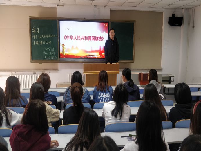 为迎接新中国成立70周年,纪念五四运动100周年,提升我院学生的家国情怀和时代精神,增强我院学生的责任感和使命感,教育学院各团支部特于2019年9月19日开展学习《中华人民共和国国旗法》专题团日活动。