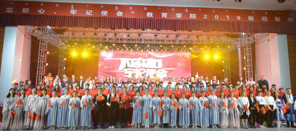 11月7日晚7点,我院在内蒙古师范大学盛乐校区学生事务中心二楼演播大厅隆重举办2019级“不忘初心、牢记使命”迎新晚会。内蒙古师范大学学生工作处副处长宝贵,教育学院党委书记铁木尔、院长米俊魁、党委副书记兼副院长王利、副院长何士、副院长边琦、专职组织员张克玉、学院全体教师、2019级新生及16、17、18级部分学生出席了晚会。此次晚会也通过斗鱼平台进行现场直播。