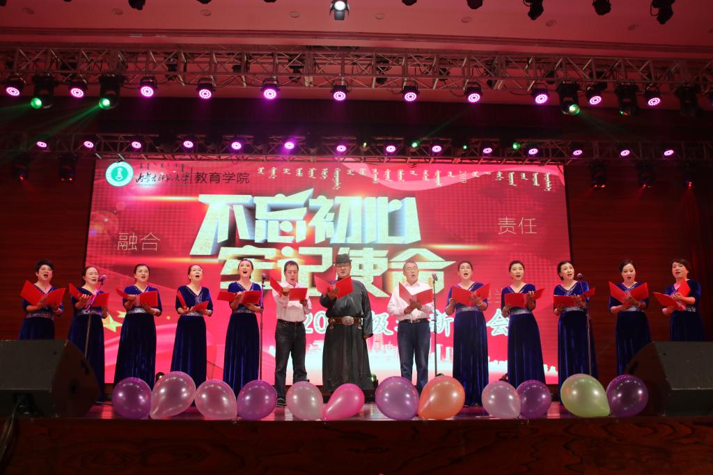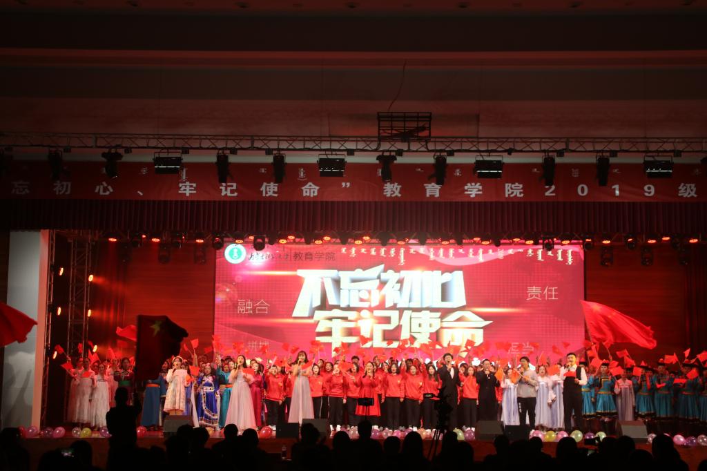 晚会在现场所有人员合唱《我和我的祖国》的歌声中圆满落下帷幕。本次迎新晚会不仅展示了教育学院的特色风采,更凸显出我院师生团结奋进的良好精神风貌,让新生们感受到了学院的和谐与活力,帮助同学们充分融入到教育学院这个温暖的大家庭中。晚会上精彩绝伦的表演,体现了新时代大学生的昂扬姿态,使同学们品味师大之美,秉持师大精神,传承师大之魂,“不忘初心,牢记使命”,以时不我待、只争朝夕的精神投身新时代的建设之中,放飞青春梦想,做一名奋发有为的师大学子。