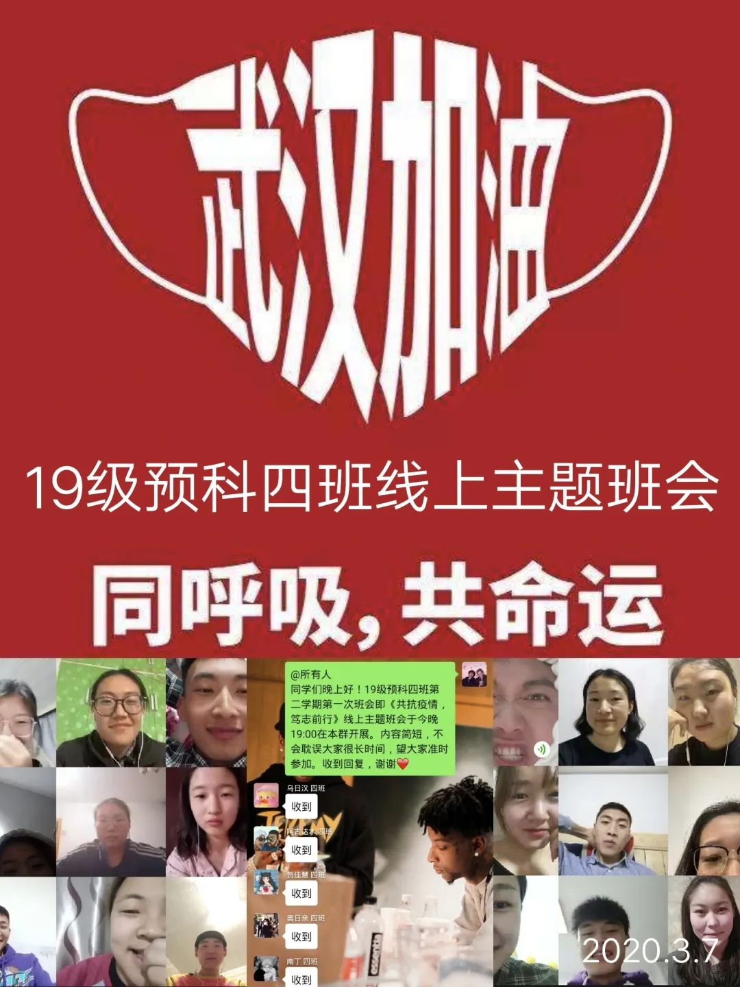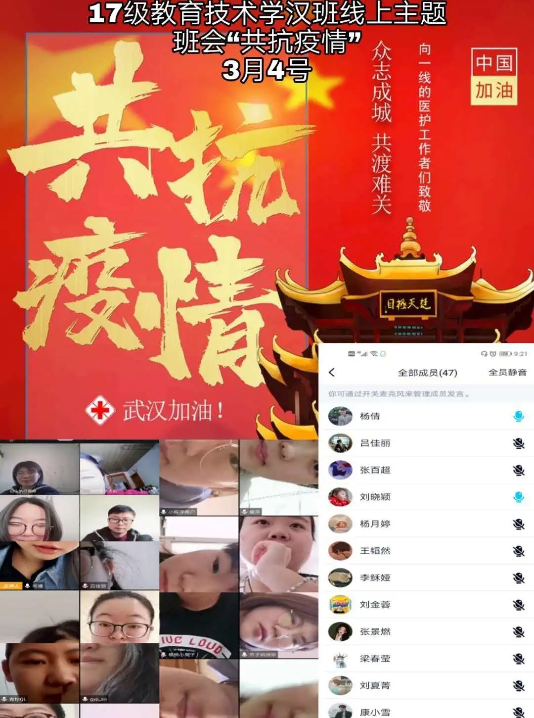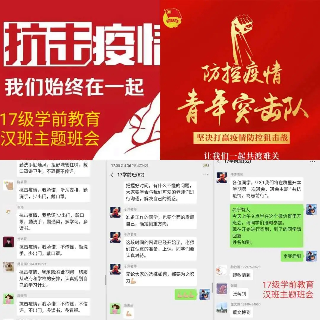 为深入贯彻落实习近平总书记关于打赢疫情防控阻击战重要指示批示精神,保障防控疫情期间“停课不停学”,充分发挥网络育人功能,根据自治区和学校有关工作部署,教育学院各班级组织召开“共抗疫情,笃志前行”为主题的疫情防控线上班会。