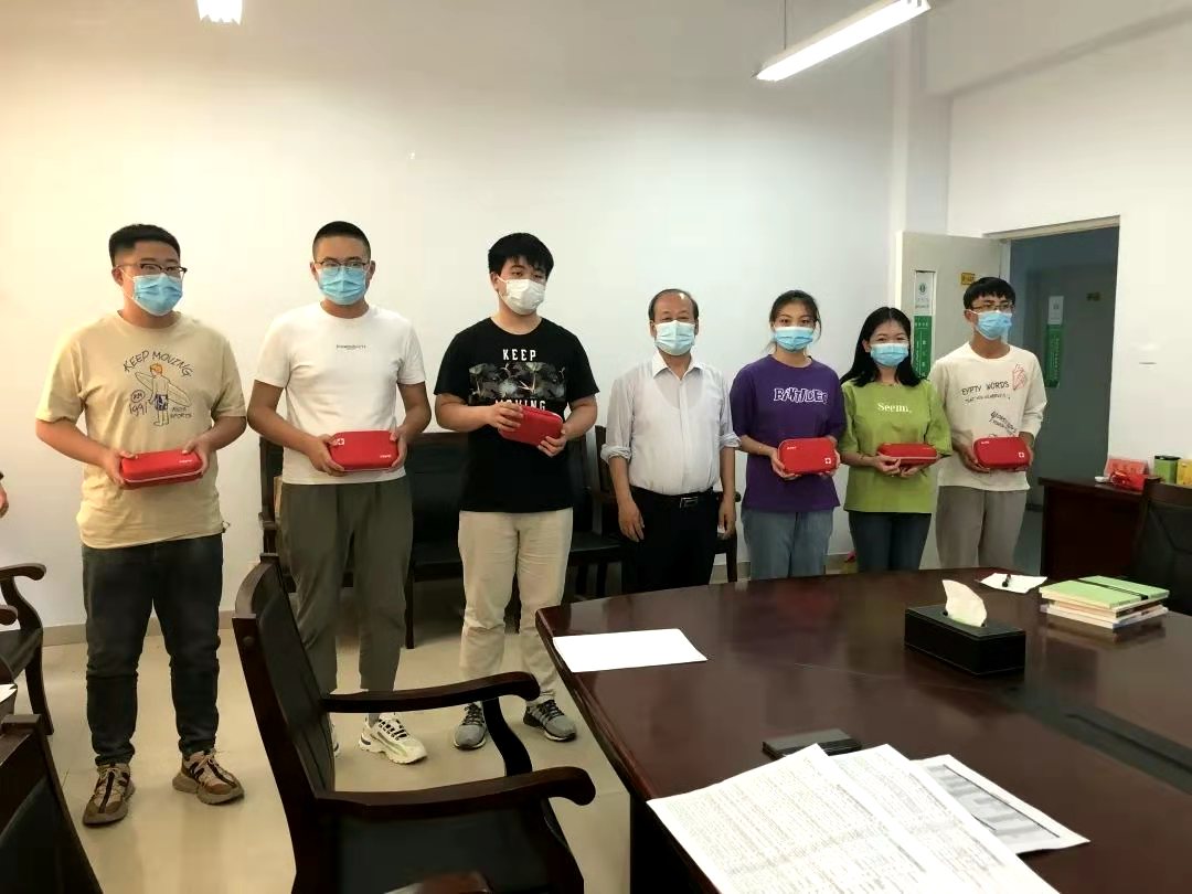 米院长代表学院向返校学生赠送防护大礼包
