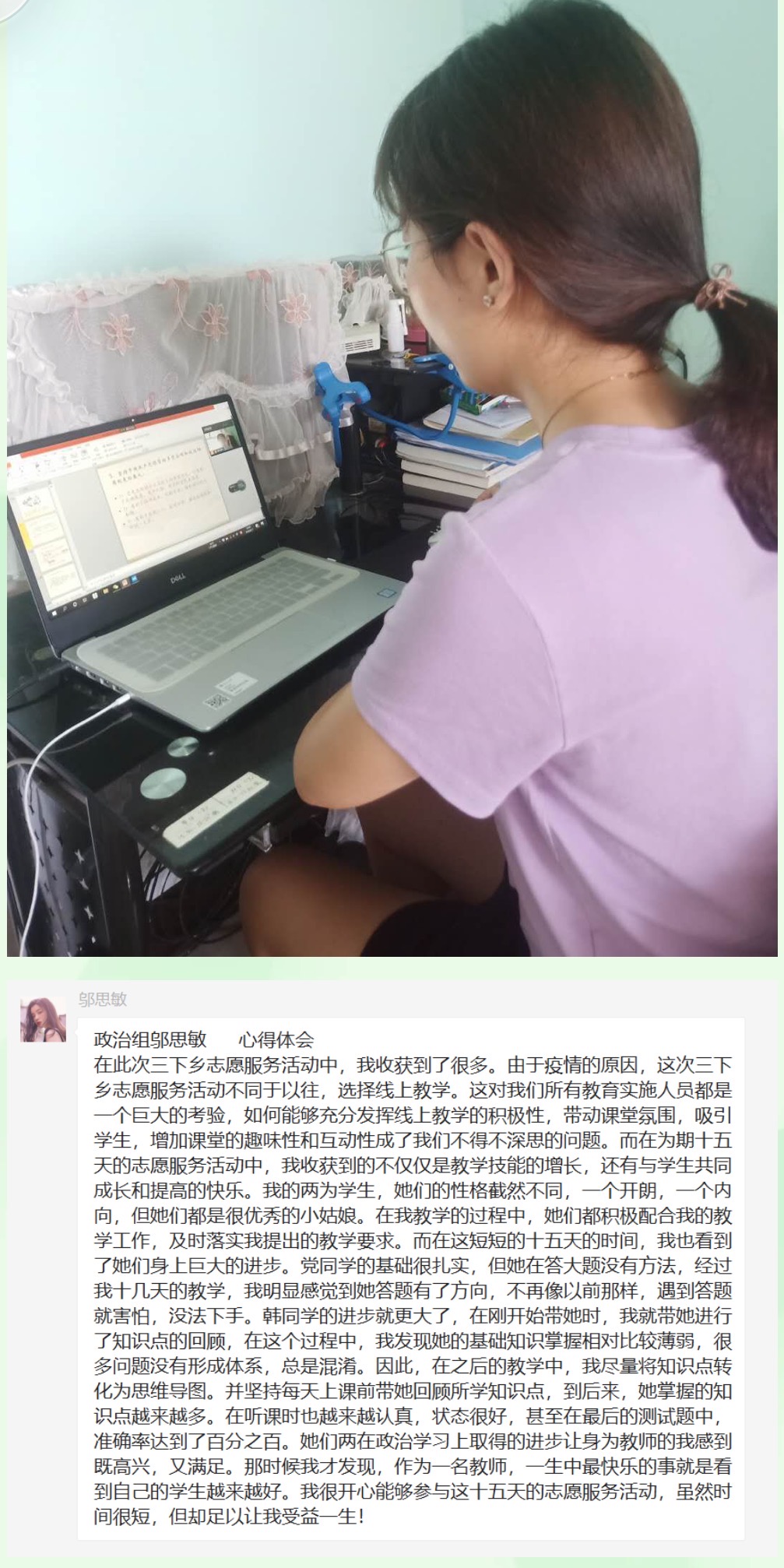 教育学院2020年暑期云端三下乡教学实施组志愿者心得体会