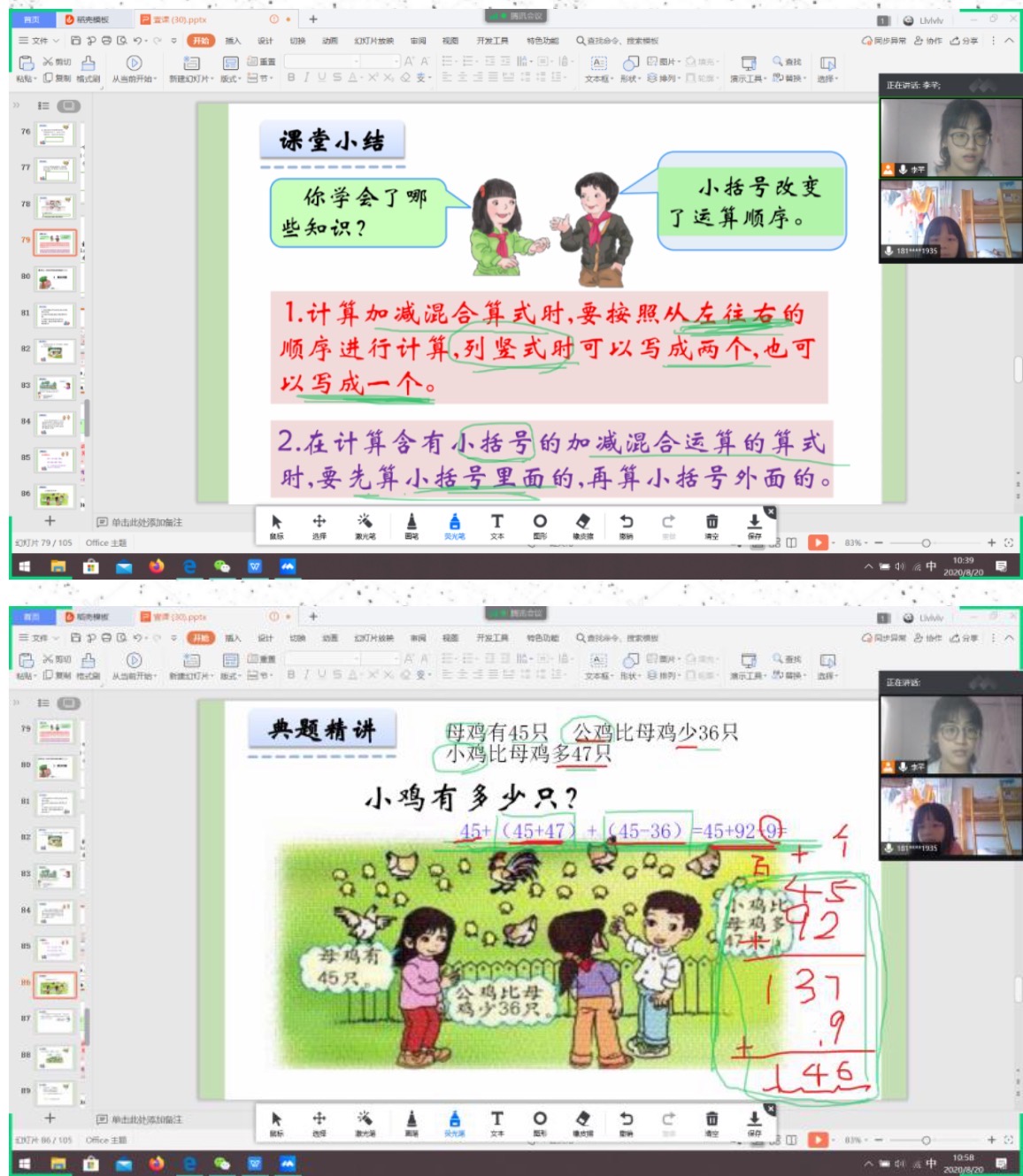 教育学院“三下乡”志愿实践活动于八月份开展至今,已历时20日,大部分工作已接近收尾,兴趣组的志愿者们仍按照教学计划按部就班地为学生们进行线上授课。志愿者们为学生讲解包括加减混合运算,英语音标、句式时态、发音规范等知识点,根据几次授课情况,志愿者们进行教学反思,发现学生问题、改进教学方式,师生共同交流成长、互帮互助。