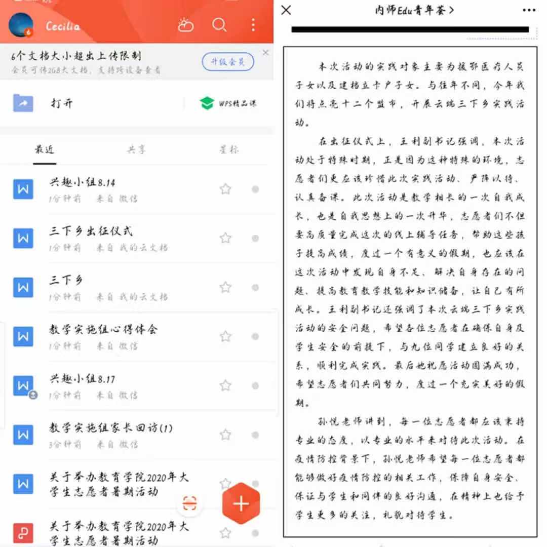 工作内容:整理教学实践部的图片和文字材料,并进行排版,制作学院公众号暑期三下乡相关推送。