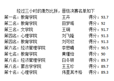 比赛过程紧张有序,选手们分别以职业生涯规划书、PPT展示及现场答辩的形式,生动展示了自己的职业理想和规划。各位选手的职业生涯规划书内容新颖、规划合理、结构完整、演讲过程富有感染力。
