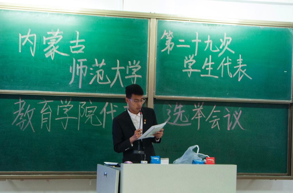 根据大会选举办法和计票结果,当选内蒙古师范大学第二十九次学生代表大会教育学院代表是:陈鹏、阿诺、李镕、赵重阳、刘莹娜、马妍、于鹏、好宝日罕、包永成、李世倩、希吉日、阿利娅、武凡喆、金鼎仪、杨恺明、郝静怡、徐鑫、黄佳慧、满非凡。