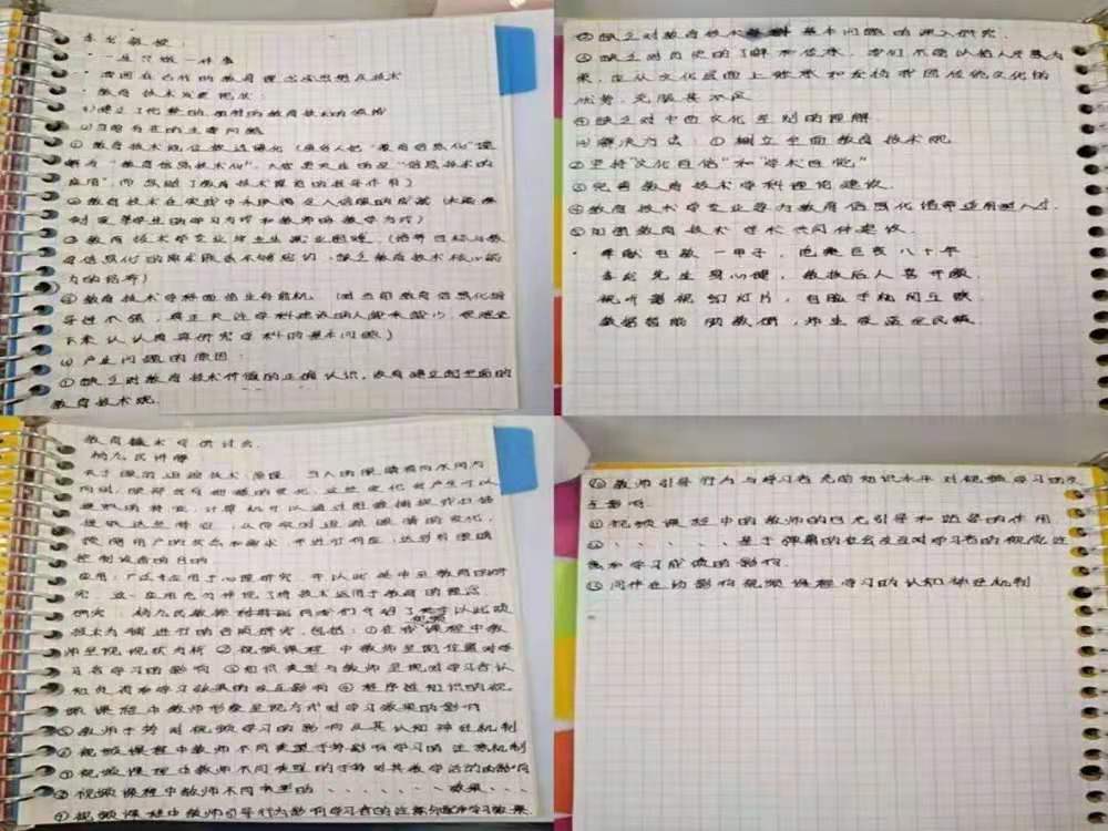 同学们以宿舍为单位汇总研讨会内容与学习心得,并在教育技术导论课上进行分享交流。