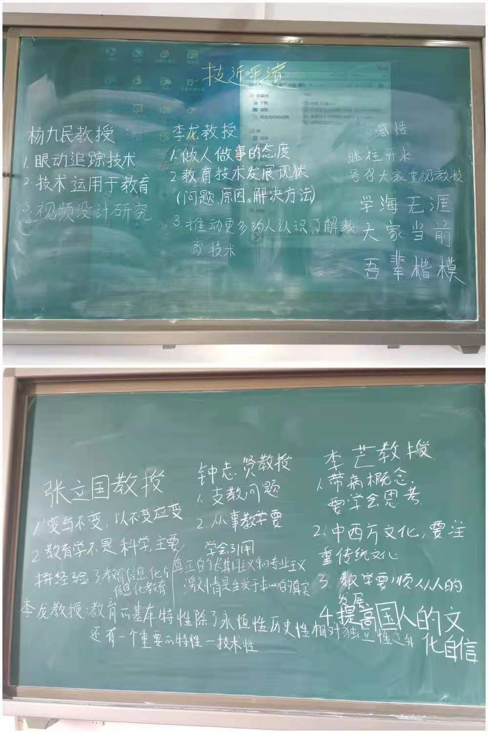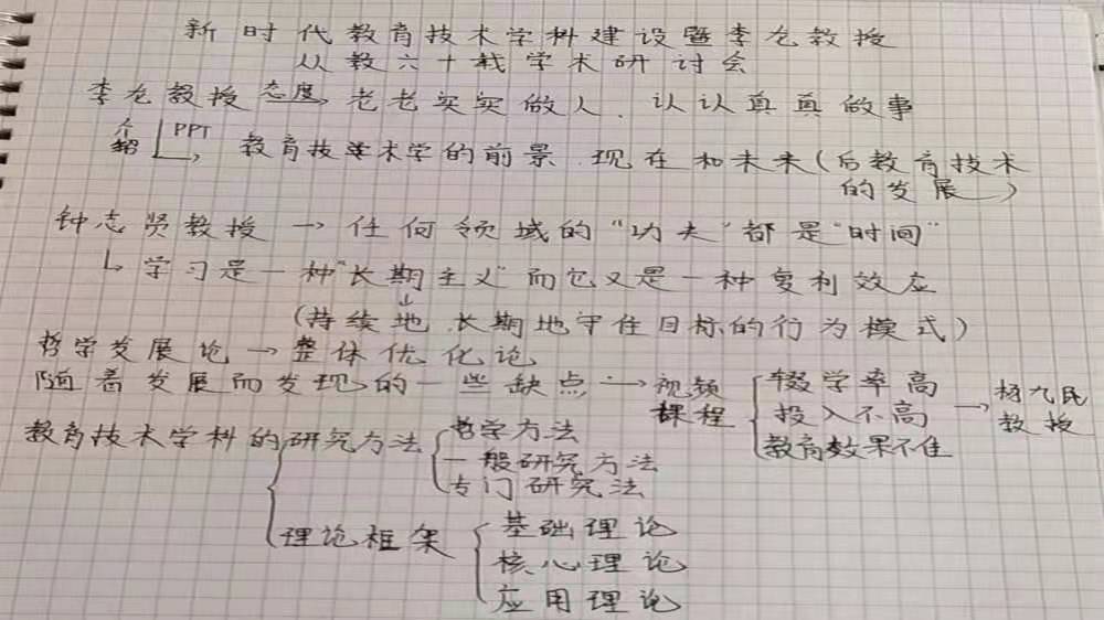 作为一年级的新生,大家不能理解顶层专家的学术思想,这很正常。但你们能从杨九民教授团队的学术研究成果,看到了技术支持教育教学的应用研究;从李龙教授的学术思想,了解到中国教育技术学体系的理论创新;从钟志贤、李芒等教授的发言中,感知到李龙教授对学术事业一如既往的专业主义激情,已经难能可贵,满满的收获。