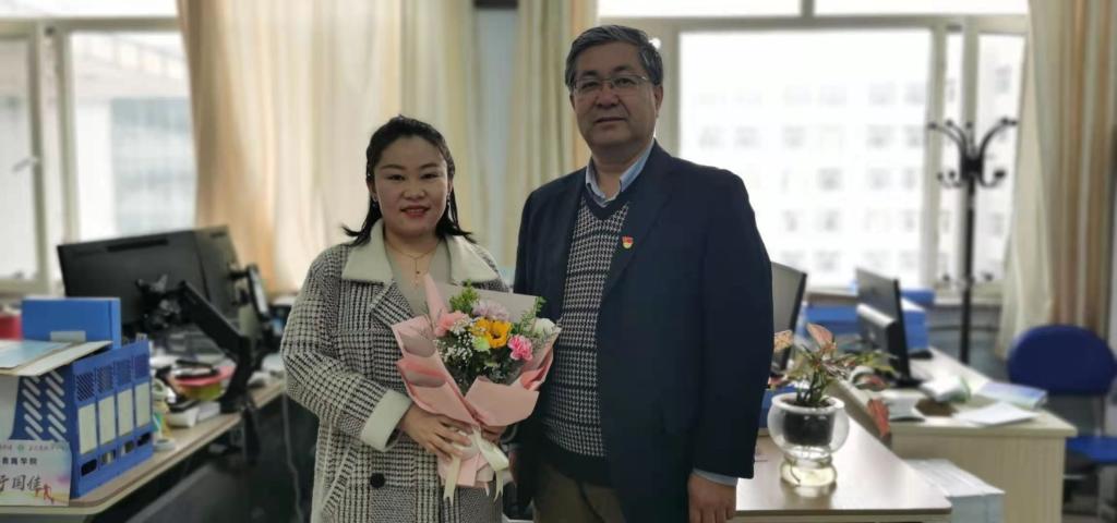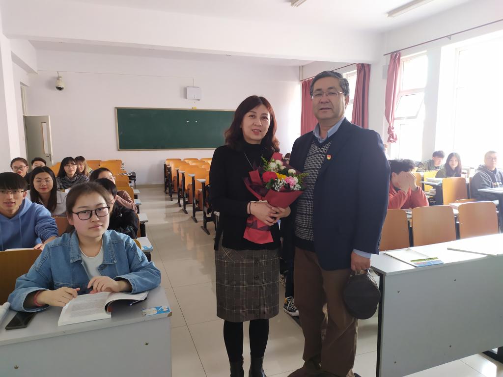 春雨绵绵,润物无声。开学第一周,正值三八妇女节,我院一线教师以饱满的热情重登三尺讲台,开始了新学期紧张而忙碌的教书育人工作。今天上午,我院党委书记铁木尔、院长米俊魁、副书记兼副院长斯琴满都呼、副院长边琦、副院长赵荣辉,以及院工会主席韩大林,看望慰问学院女教职工,与她们亲切交谈,对她们在各自岗位中所付出的辛勤汗水和努力表示感谢,并送上美丽鲜花。