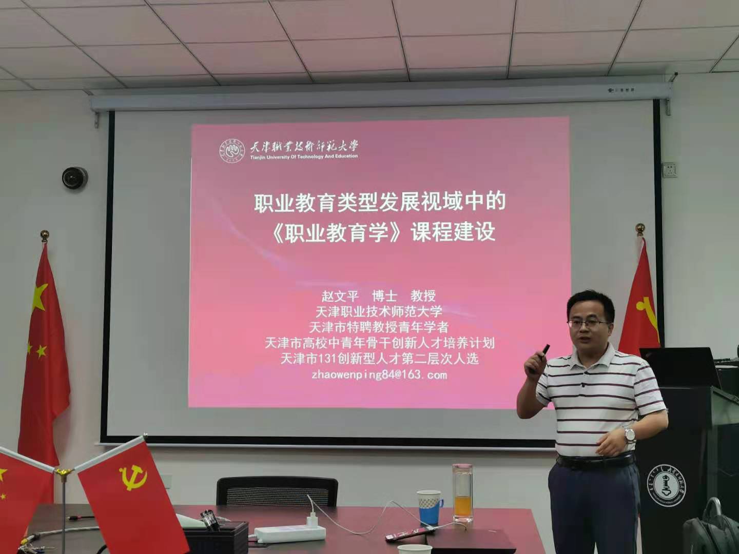 6月24日下午,天津职业技术师范大学职业技术教育学院教授、博士生导师赵文平教授应邀为我院师生做了题为“走进职业教育学科的个体履历分享——以职业教育课程与教学论研究为例”的学术讲座。本场讲座为教育学院恢复建院(系)40周年暨教育学专业国家一流本科建设点系列讲座,教育学本科专业师生及全体研究生参加了此次活动,讲座在盛乐校区院系楼407举行,副院长赵荣辉主持讲座。