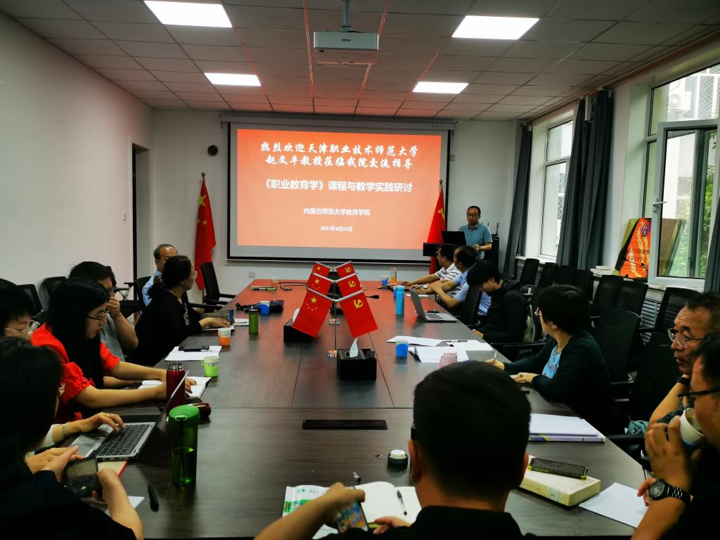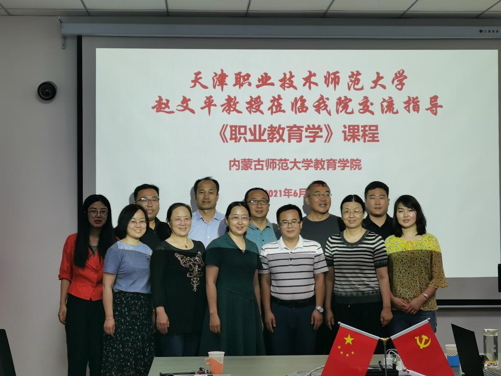 6月25日上午,在赛罕校区文史楼207会议室,赵教授作了题为:“职业教育类型发展视域中的《职业教育学》课程建设”的学术报告,随后参与了我院《职业教育学》课程的课程建设与教学讨论会。教育学院院长米俊魁教授、党委副书记副院长斯琴满都呼、副院长赵荣辉教授、公共课教研室成员及《中学教育学》《职业教育学》的全体任课教师参加了本次学术活动。副院长边琦教授主持报告会。