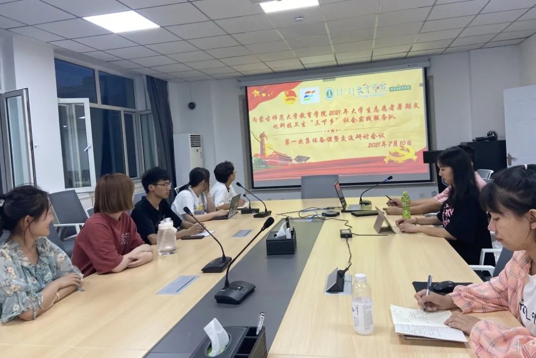 为深入落实开展内蒙古师范大学2021年大学生志愿者暑期文化科技卫生“三下乡”社会实践活动,7月10日晚19:00,我院在学院楼A406召开第一次交流研讨会,本次会议采取线上线下相结合的方式。全体“三下乡”志愿者参加本次会议。