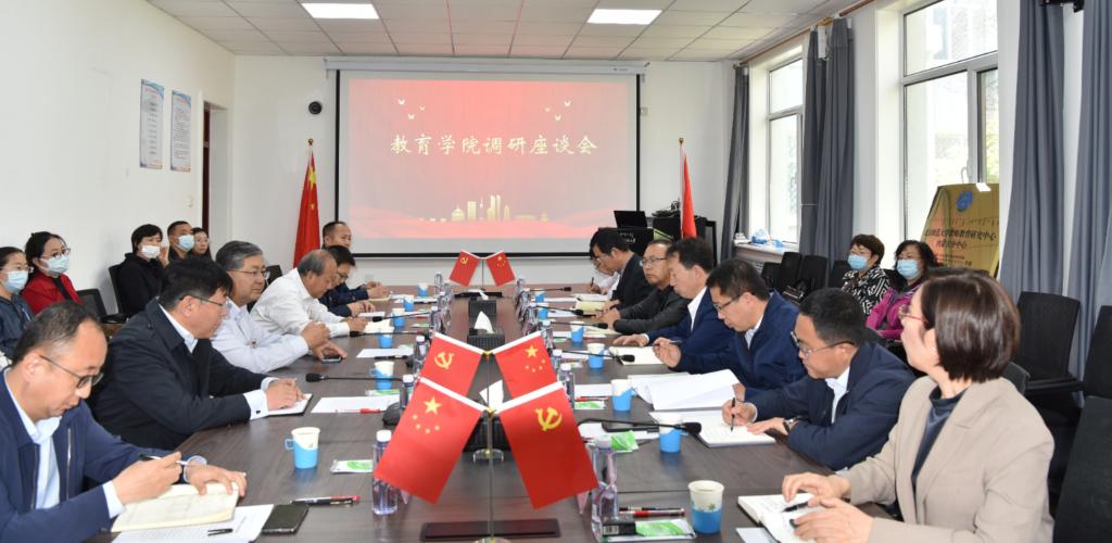 2022年5月16日,党委副书记、校长李树林,党委委员、副校长宫箭,党委委员、组织部部长褚亚申,党政办公室主任、宣传部负责人斯钦,研究生院院长刘官厅,科技处(社科处)处长贾美林深入教育学院调研。