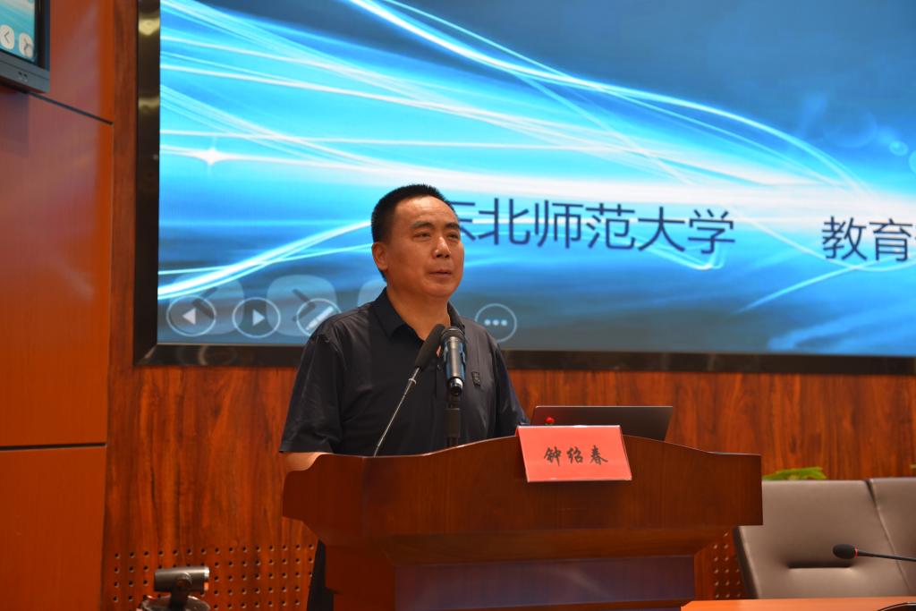 内蒙古师范大学党委委员、副校长斯钦代表学校对与会嘉宾致辞表示欢迎。教育部高等学校教育技术专业教学指导分委员会主任、广东工业大学党委书记胡钦太教授代表主办单位致辞,胡教授回顾了教育技术国际论坛创办20年来的发展历程和重要使命,指出本次论坛是疫情后首次恢复举办的论坛活动,并积极响应贯彻党的二十大报告,本论坛汇聚群贤,百花齐放,期待各位为共同推动学科专业在教育数字化背景下的数字发展贡献集体智慧,团结奋斗献未来。