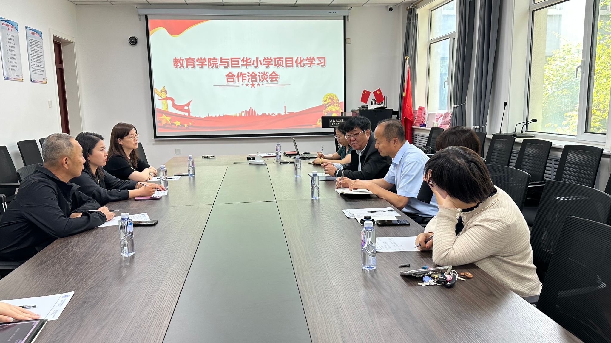 巨华小学校长庞娜介绍了学校情况,表达了推进开展项目式学习、促进学校特色化发展的愿望。学院党委书记周越介绍了教育学院的基本情况和学院师生在项目式学习方面的工作基础。院长赵荣辉表达了重视态度,表态可以由学院邀请国内专家来呼讲学,可以从民族教育研究基地角度设立课题、提供支持,推进此项工作出成果、见成效。