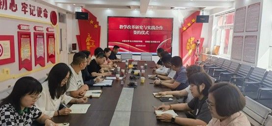 为充分发挥教育学院教学科研资源对中小学校的支持作用,推进学院有组织科研工作向服务当地基础教育教学改革深入发展,9月12日下午,教育学院与呼和浩特市新城区胜利街小学在胜利街小学联合召开会议,就教学改革研究与实践以签署合作备忘形式明确合作共识。学院党委书记周越、实验中心主任郭伟、教育技术学系副主任张利桃、呼市新城区教育教学研究中心张强主任与胜利街小学杨红兵校长及相关领导和骨干教师参加了合作仪式。