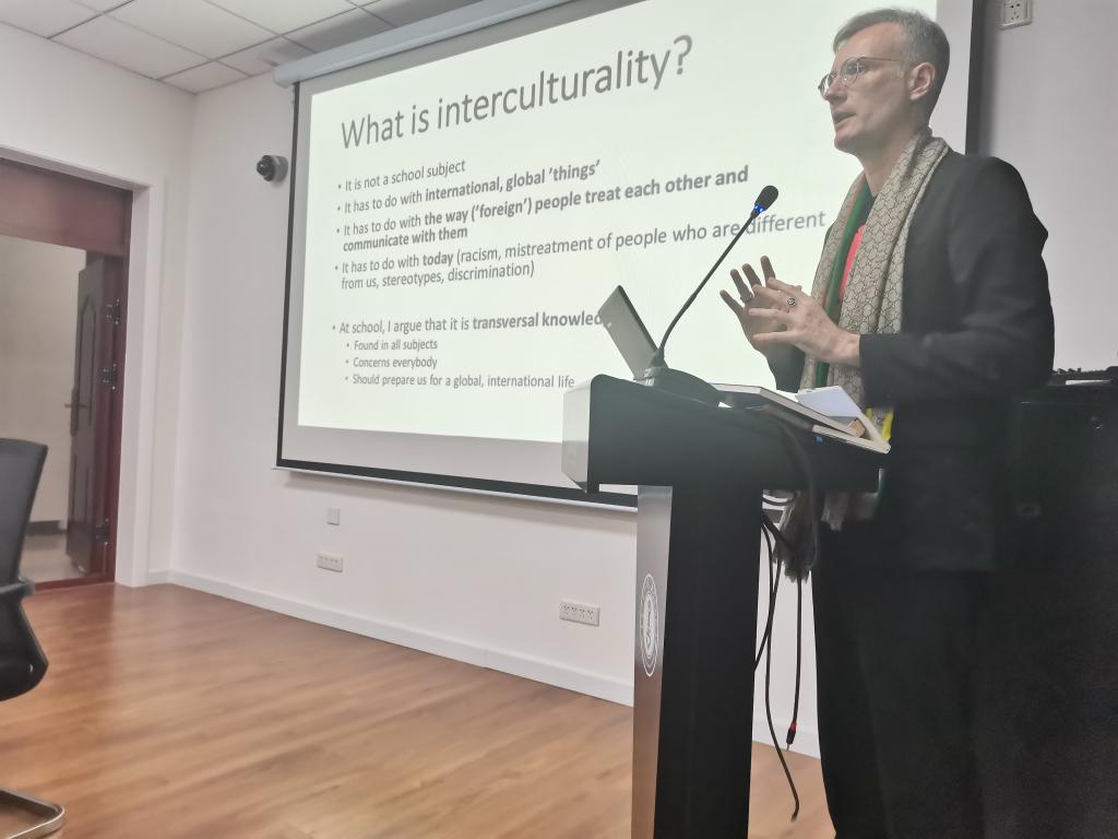 2021324日上午,芬兰赫尔辛基大学Fred Dervin 教授邀作“教育视野中跨文化交流(Interculturality for all in education)”的讲座。讲座由云手机网页版入口承办,云手机网页版入口的研究生们近50人参与讲座。